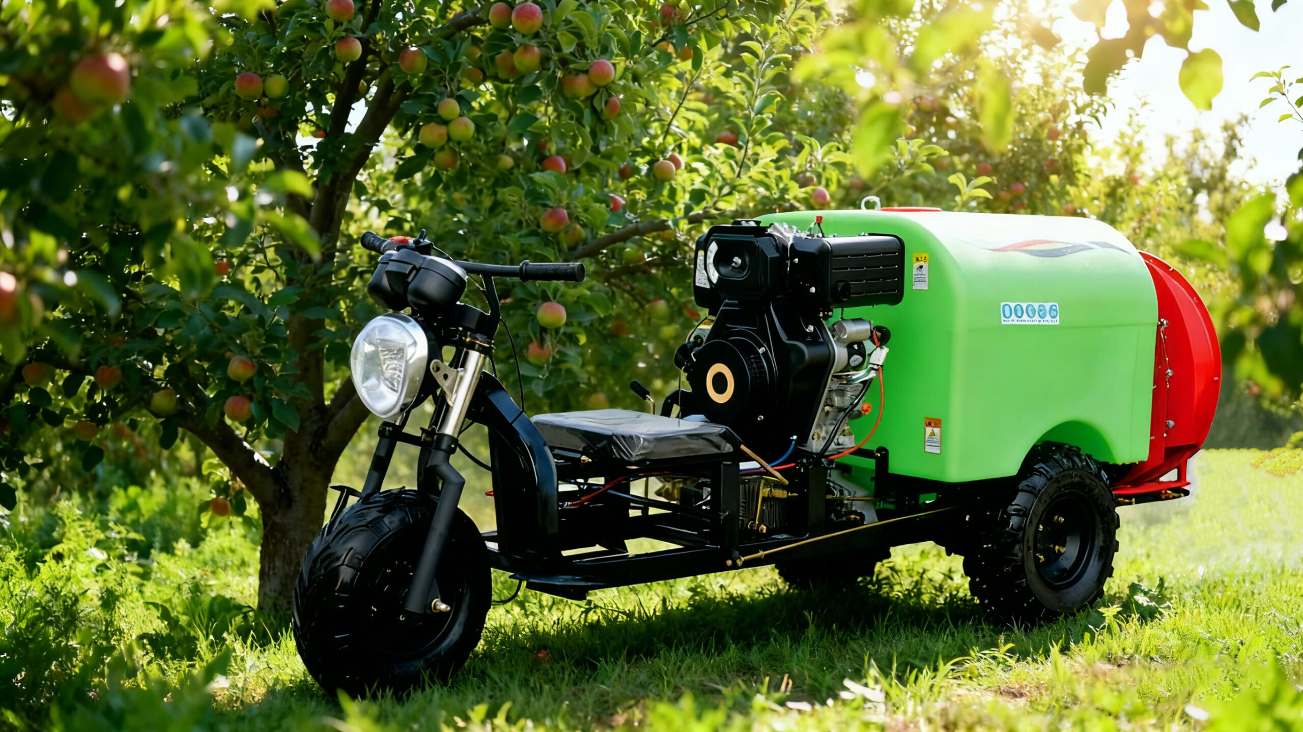 Эта трехколесная платформа обеспечивает опрыскивание с помощью сжатого воздуха, гарантируя оптимальное распределение пестицидов и удобрений по сельскохозяйственным культурам и садам.