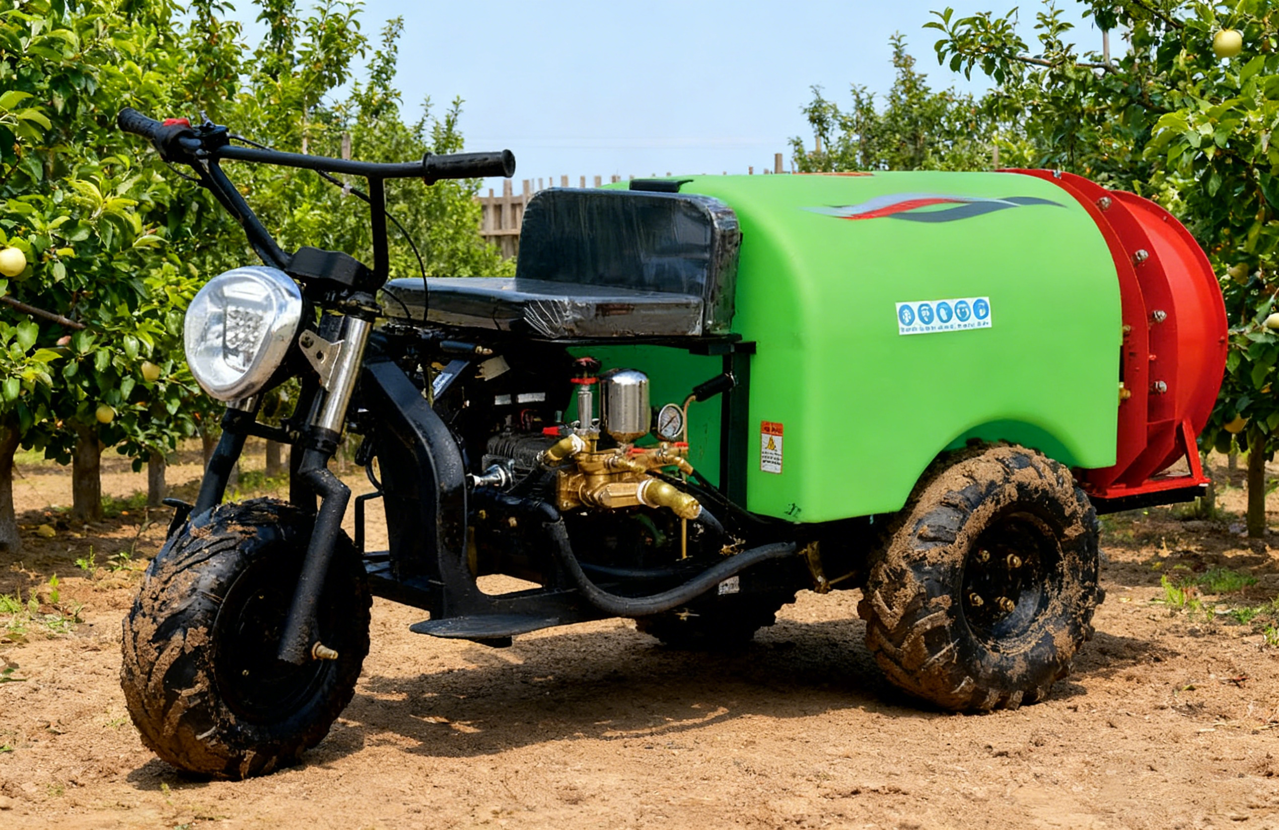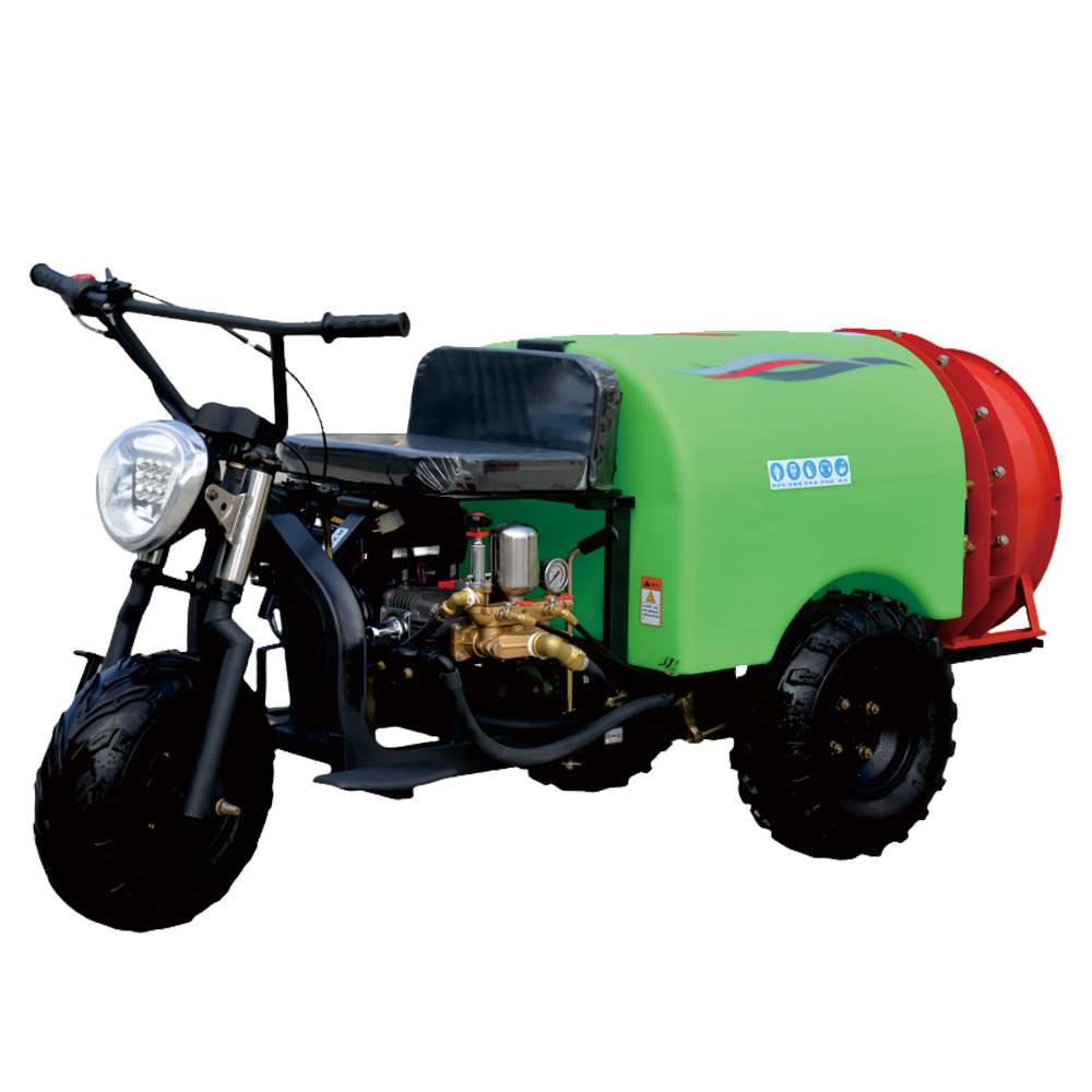 • Трехколесный пневматический опрыскиватель сочетает в себе устойчивость на трех колесах и технологию пневматического распыления для эффективной обработки больших площадей.